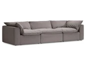 Диван «Rivoli» - модульный каркасный диван, состоящий из модулей, соединенных механизмом «крокодил». Каркас модулей монолитный, подлокотники не съемные. Каждый модуль комплектуется индивидуальной покровной подушкой, зафиксированной на карабины. Сидение дивана корпуса мягкое, дополнительную мягкость изделию придают верхние покровные мягкие перьевые подушки.