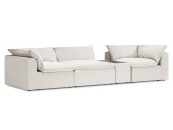 Диван «Rivoli» - модульный каркасный диван, состоящий из модулей, соединенных механизмом «крокодил». Каркас модулей монолитный, подлокотники не съемные. Каждый модуль комплектуется индивидуальной покровной подушкой, зафиксированной на карабины. Сидение дивана корпуса мягкое, дополнительную мягкость изделию придают верхние покровные мягкие перьевые подушки.