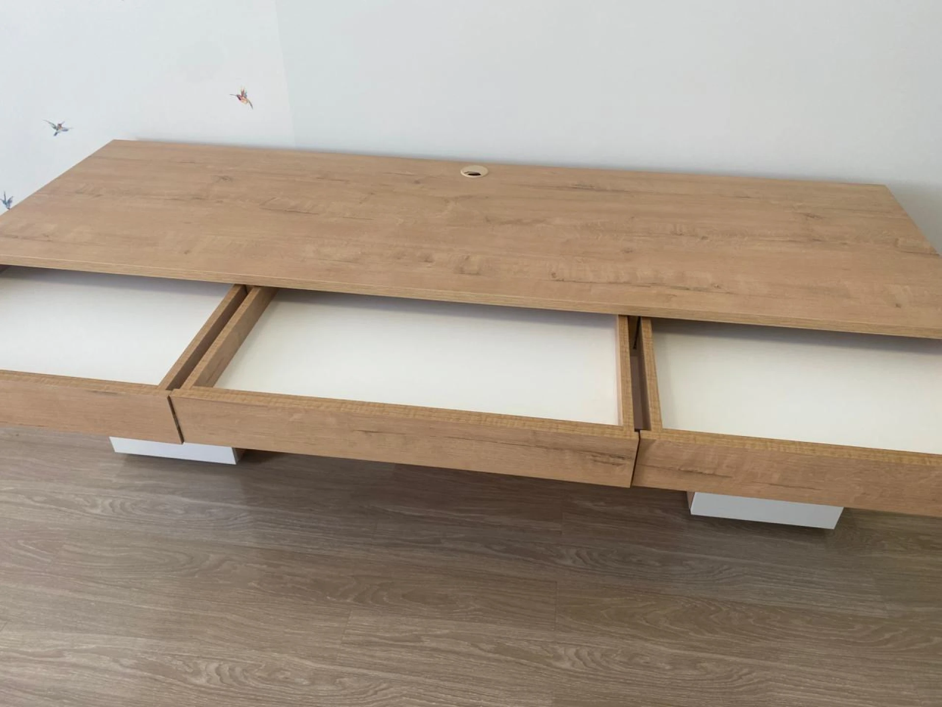 Консоль с тремя ящиками на скрытых направляющих. Дно ящиков из ДВПО белого цвета.