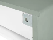 Ящик перемещается по шариковым направляющим. Без функции плавного закрывания. С фиксацией в закрытом положении.