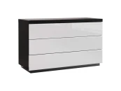 Комод с 3 выдвижными ящиками, открывающимися по принципу «нажал-открыл». Фасады ящиков и верхняя поверхность комода декорированы стеклом.|Комод рекомендуется крепить к стене.