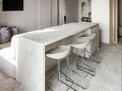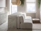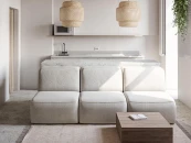 Модульный диван, состоящий из 9 элементов, отлично впишется в кухню-гостиную, ведь за ним можно расположить консоль или барную стойку.