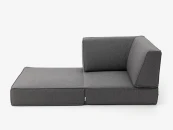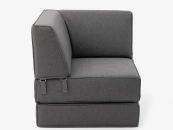 Угловое раскладное бескаркасное кресло выполнено в практичной ткани рогожка с благородной гладкой фактурой, издалека напоминающей костюмную итальянскую ткань. Необычная форма угловой спинки и стильные застёжки добавляют минималистичному строгому дизайну особый характер.
