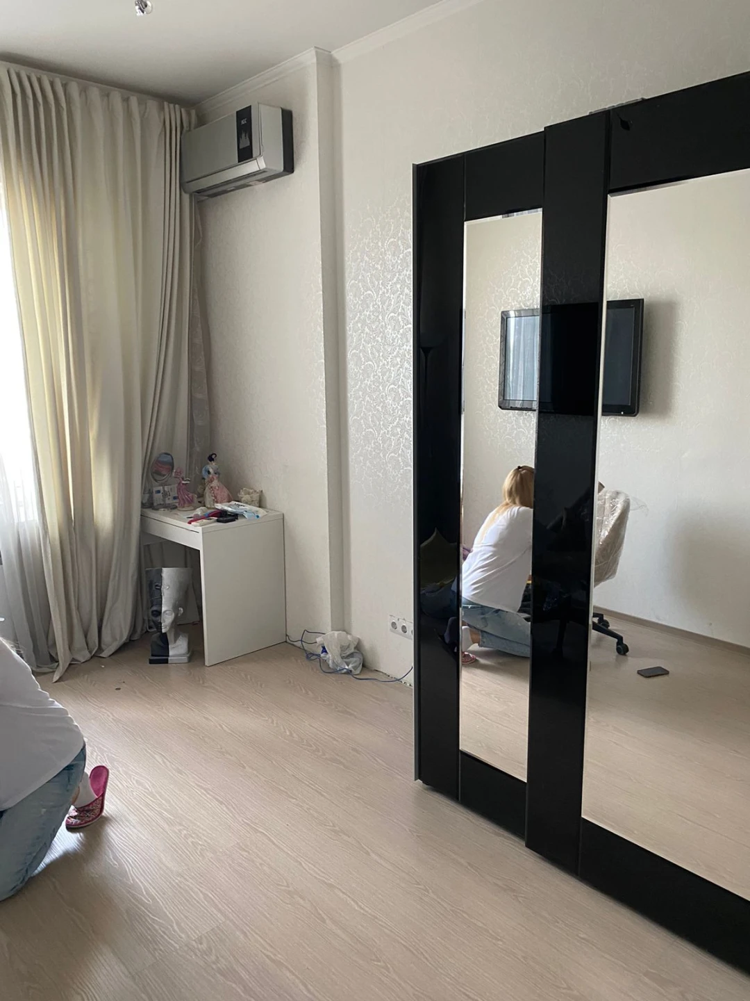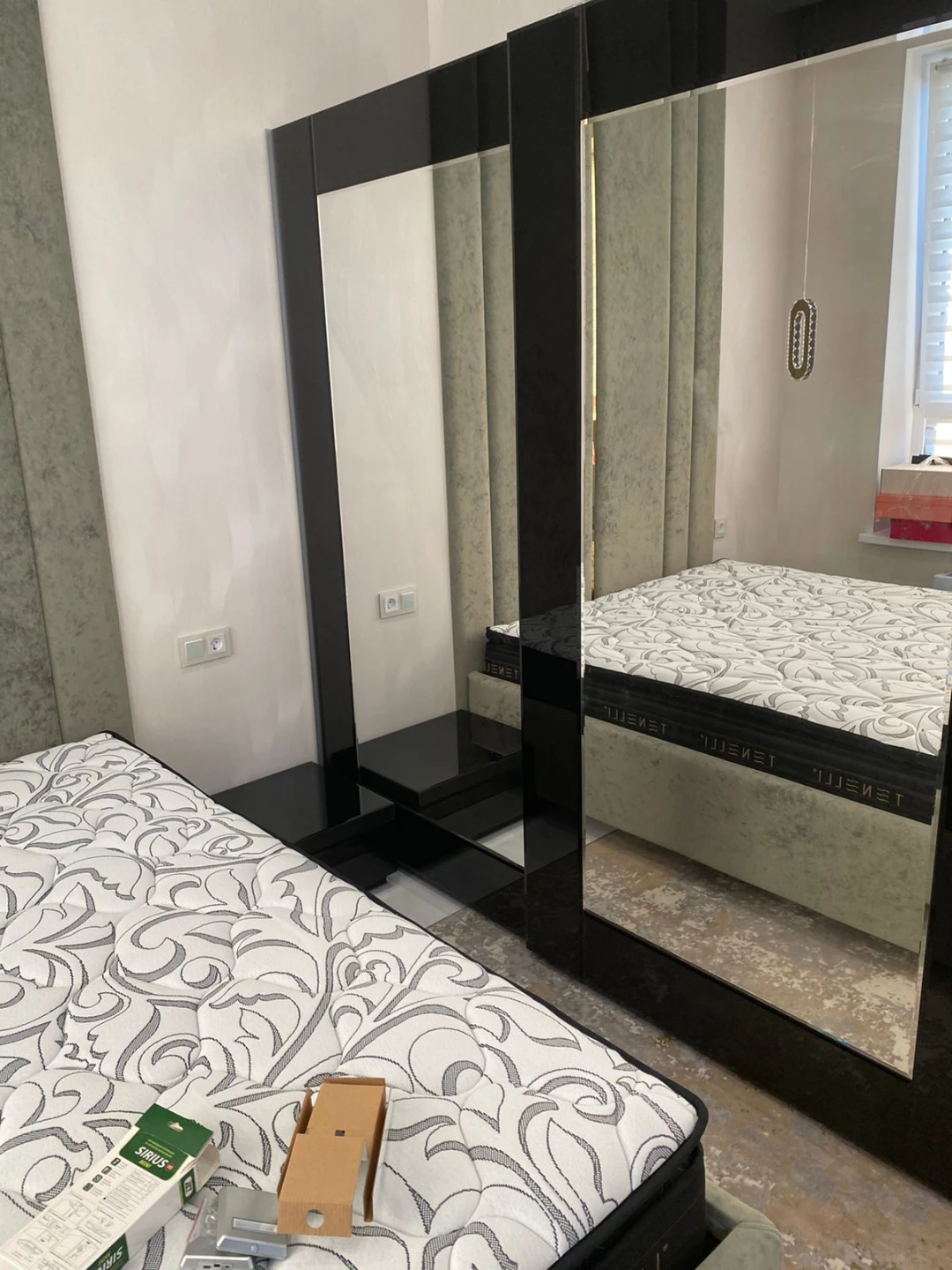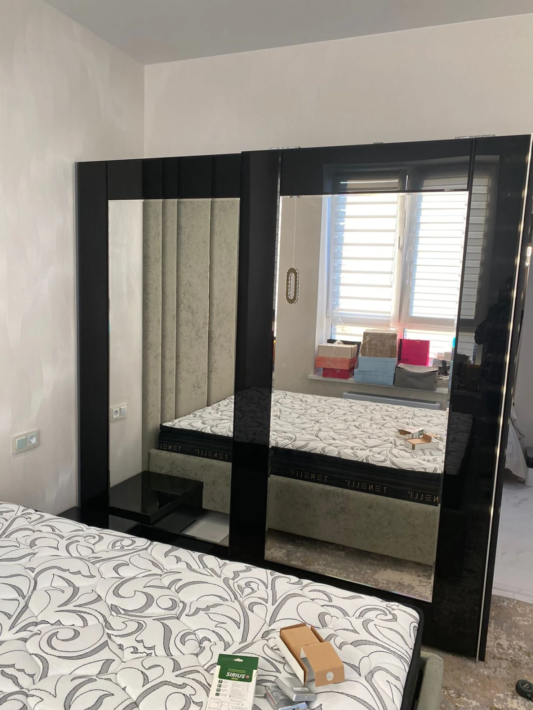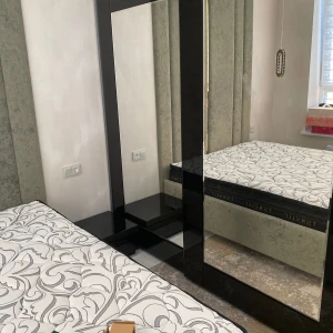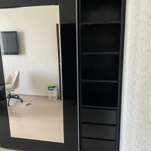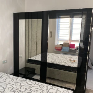 Шкаф-купе с системой плавного закрывания дверей TopLine. Фасад декорирован зеркалами и окрашенным стеклом. Шкаф имеет четыре отделения, в которых установлена штанга под длинную одежду, две штанги под короткую одежду и щитовые полки. В шкаф дополнительно устанавливаются выдвижные элементы: - галстукодержатель - корзины для белья - полки для обуви - держатель для брюк На каждый из этих элементов можно установить лоток для мелочей. В качестве опции предлагаются светодиодные светильники Sirius mini с датчиком движения. Они устанавливаются в любом месте шкафа и работают от батареек. Изделие комплектуется фурнитурой Hettich (Германия).