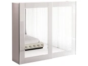 Шкаф-купе с системой плавного закрывания дверей TopLine. Фасад декорирован зеркалами и окрашенным стеклом. Шкаф имеет четыре отделения, в которых установлена штанга под длинную одежду, две штанги под короткую одежду и щитовые полки. В шкаф дополнительно устанавливаются выдвижные элементы: - галстукодержатель - корзины для белья - полки для обуви - держатель для брюк На каждый из этих элементов можно установить лоток для мелочей. В качестве опции предлагаются светодиодные светильники Sirius mini с датчиком движения. Они устанавливаются в любом месте шкафа и работают от батареек. Изделие комплектуется фурнитурой Hettich (Германия).