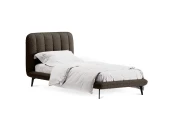 Прочные ножки из металла незаметно приподнимают корпус над полом. Поэтому кровать смотрится воздушно. Также это упрощает уборку. Мягкие изящные царги плавно перетекают в изголовье, единство с которым подчеркивается рельефным кантом.