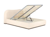 Изголовье кровати состоит из деревянных брусков (хвойных пород). Дно отделения для хранения выполнено из плиты ЛДСтП 16 мм. В основании изголовья и царг установлены планки из МДФ 24мм, окрашенные черной эмалью. На планках установлены пластиковые подпятники. Лицевой чехол каркаса - несъемный, крепится к каркасу при помощи мебельных скоб. Рекомендованная высота матраса не более 230 мм.
