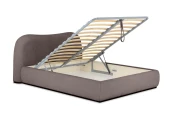 Изголовье кровати состоит из деревянных брусков (хвойных пород). Дно отделения для хранения выполнено из плиты ЛДСтП 16 мм. В основании изголовья и царг установлены планки из МДФ 24мм, окрашенные черной эмалью. На планках установлены пластиковые подпятники. Лицевой чехол каркаса - несъемный, крепится к каркасу при помощи мебельных скоб. Рекомендованная высота матраса не более 230 мм.