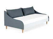 Каркас корпуса кушетки выполнен из белого гладкого ЛДСП толщиной 22 мм.. Подлокотники выполнены из МДФ толщиной 16 мм..