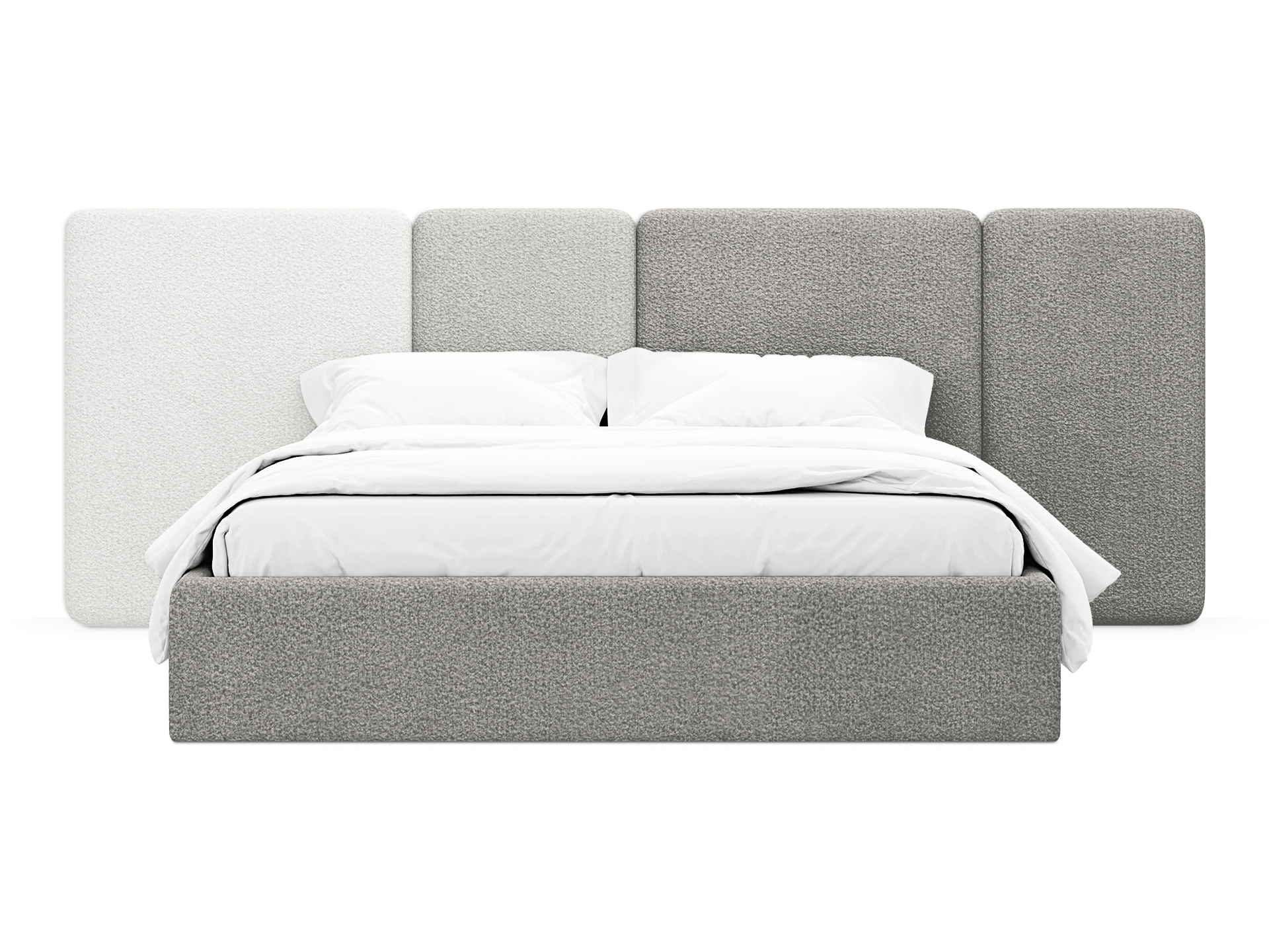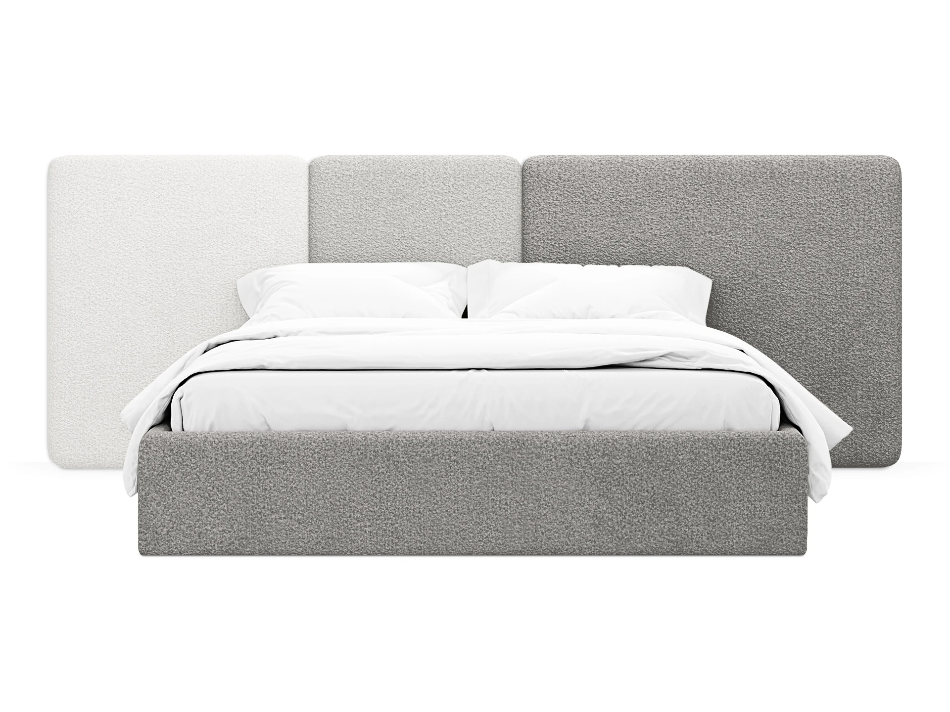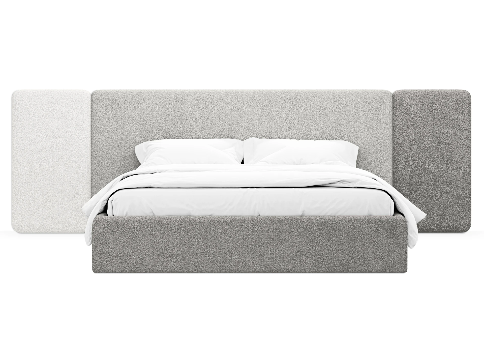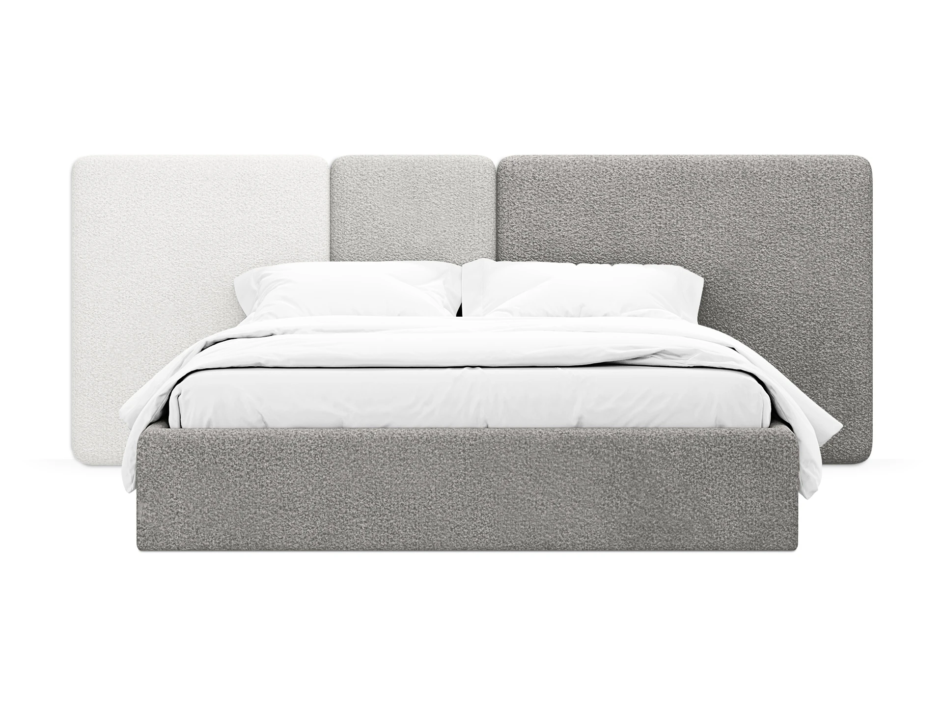Кровать Atessa — модель с акцентной геометрией и мягкими панелями в изголовье. Широкое настенное изголовье состоит из отдельных модулей, что позволяет комбинировать оттенки обивки для создания уникальных цветовых решений. Мягкая обшивка царг обеспечивает тактильный комфорт по периметру спального места.