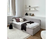 Кровать представлена в ткани Тедди — прочном велюре, который легко чистится влажной салфеткой. Это отличный выбор для активных детей, так как он не боится загрязнений и долго сохраняет свой первоначальный вид.