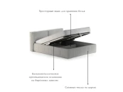 Вместительный ящик находящийся под основанием пригодится для хранения сезонной одежды, постельных принадлежностей, столового текстиля. Короб без усилий открывается с помощью подъёмного механизма на газлифтах. Ортопедическое основание распределяет нагрузку по зонам жесткости, что позволяет сохранить здоровье во время сна, снять мышечное напряжение и увеличить срок службы матраса.