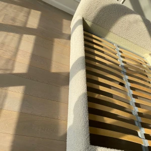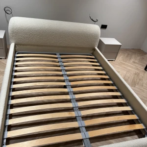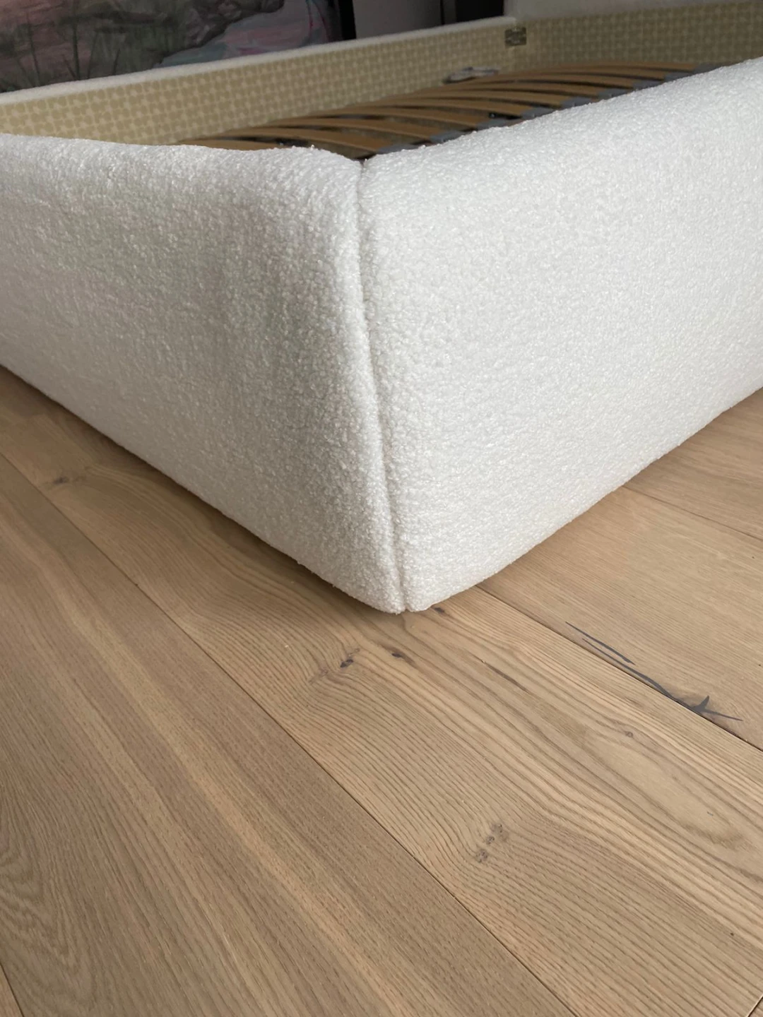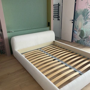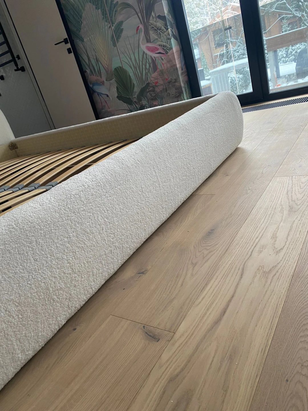 Кровать Sintra — приглашение в нежный сон. В основе дизайна — уникальное сочетание простоты и изысканности. Внушительный силуэт уравновешен эргономикой плавных линий, осязаемым шармом тактильной обивки. Мягкие царги создают ощущение безопасности. Пухлое изголовье добавляет непринужденности, излучает манящее тепло и поддержку. Отдыхайте, читайте, смотрите, работайте, не покидая «островок умиротворения»! Деликатная обивка с фактурой букле словно «ласковые объятия мамы» снимет стресс, тревогу, напряжение.