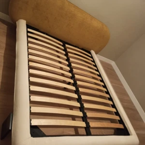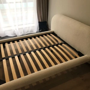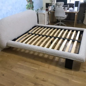 Softbay — дизайнерская кровать со скульптурным овальным изголовьем, мягкими царгами и опорами с облицовкой из ясеня. Модель имеет смелый образ, который построен на плавных линиях, минимализме с намеком на скандинавскую эстетику. Нежное комфортное изголовье без острых углов идеально подходит для чтения, просмотра фильмов, ценных минут релакса и отдыха. Периметр состоит из боковин, полностью обитых супермягкой тканью «букле» с приятным ворсом. Выглядит красиво, актуально, безопасно и эргономично.