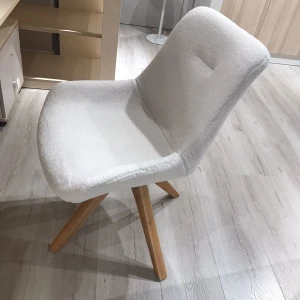 Материал обивки - мех, материал ножек - массив гевеи. На ножках предусмотрены специальные подпятники, которые предотвращают скольжение и повреждения напольного покрытия.