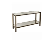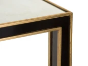 Дизайн консоли Камбрия был вдохновлен ??мелодией Коула Портера. Поразительная отделка из окрашенного черного дерева с золотой окантовкой  дополнена зеркальной столешницей. Опорой изделия служат четыре прямые ножки, объединенные полкой из состаренного зеркала. Отличный помощник в организации открытого хранения  небольших предметов интерьера, декора и книг. Идеально подходит для использования в гостиной.