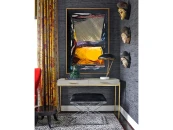 Консоль / Письменный стол Монтгомери удивительно сочетающий в себе современный и классический дизайн. Столешница из бежевой шагреневой кожи, установлена на элегантных ножках золотого цвета.