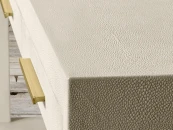 консоль с двумя ящиками Мередит удивительно сочетающий в себе современный и классический дизайн. Модная во Франции 18-го века обивка, известная как шагрень, теперь вернулась, на этот раз в виде двойника из текстурированной кожи, придавая правильную нотку нашему консольному столу, аккуратно оборачивает прямые линии стола мягкой текстурой. Сдержанные формы обтянуты с точным воспроизведением текстуры и рисунка натуральной кожи. Зауженные ножки с колпачком из теплой латуни добавляют изысканный завершающий штрих.