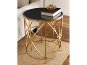 Круглый приставной столик с металлическим золотым  основанием и чёрной столешницей.