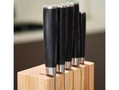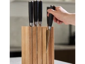 - Универсальность и компактность. Подставка подходит для любых кухонных ножей и не занимает много места.
