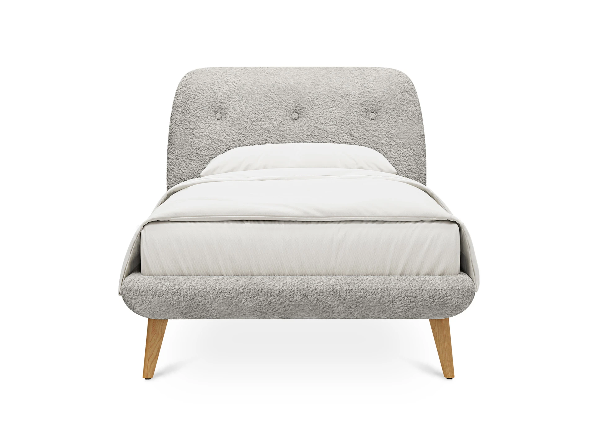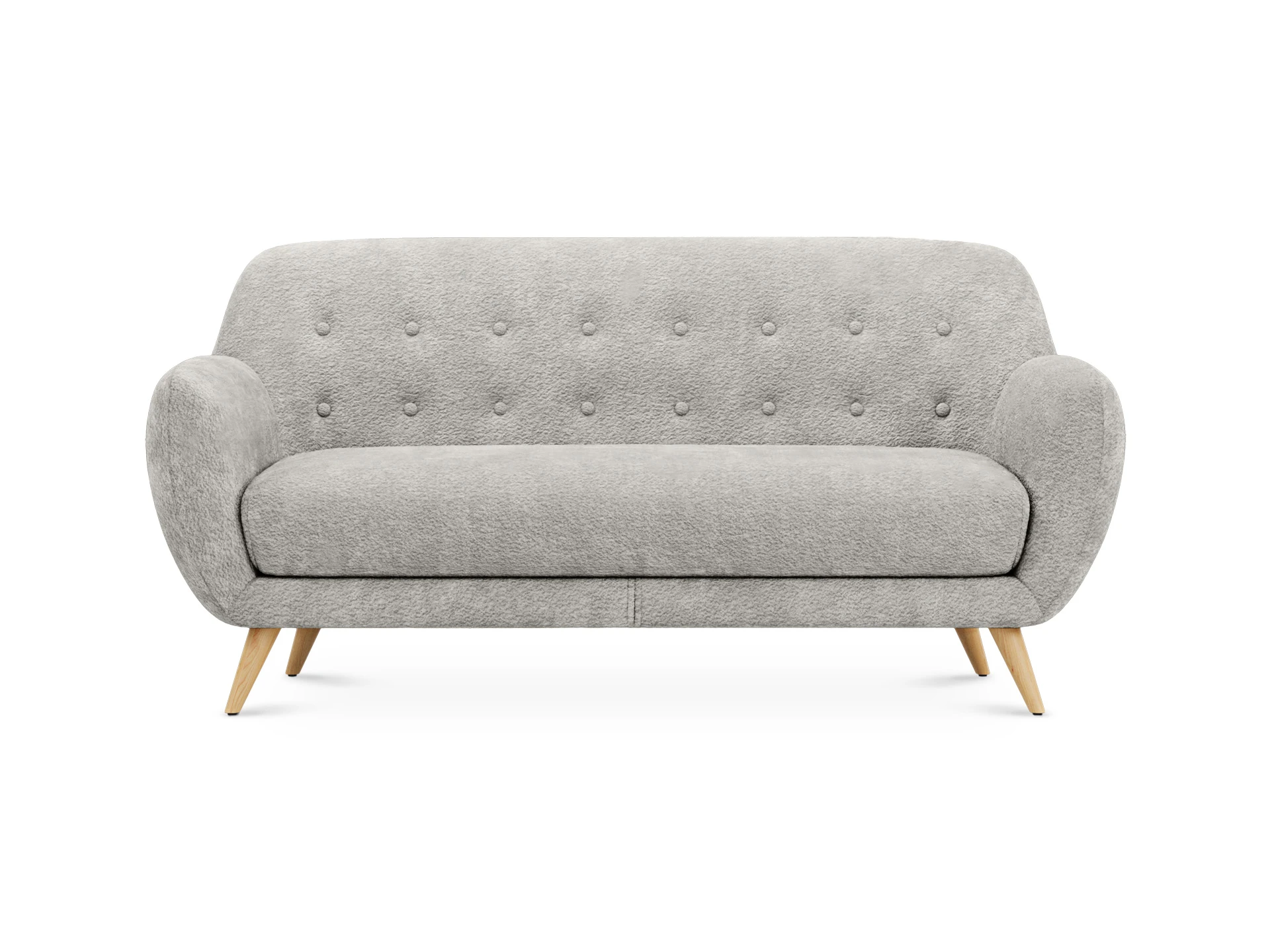 Невысокие (200 мм) ножки изготовлены из массива бука, дополнены фетровыми подпятниками, благодаря которым они не царапают напольное покрытие. Каркас выполнен из брусков дерева хвойных пород. А для максимального комфорта сидящего мы добавили в качестве наполнителя пенополиуретан марки ST (22/36) и синтепон – упругие, удобные, не теряющие формы даже при активном использовании мебели. Чехол из приятной на ощупь фактурной ткани несъёмный, декорирован пуговицами.