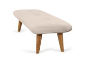 Невысокие (200 мм) ножки изготовлены из массива бука, дополнены фетровыми подпятниками, благодаря которым они не царапают напольное покрытие. Каркас выполнен из брусков дерева хвойных пород. А для максимального комфорта сидящего мы добавили в качестве наполнителя пенополиуретан марки ST (22/36) и синтепон – упругие, удобные, не теряющие формы даже при активном использовании мебели. Чехол из приятной на ощупь фактурной ткани несъёмный, декорирован пуговицами.