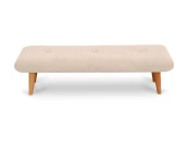 Невысокие (200 мм) ножки изготовлены из массива бука, дополнены фетровыми подпятниками, благодаря которым они не царапают напольное покрытие. Каркас выполнен из брусков дерева хвойных пород. А для максимального комфорта сидящего мы добавили в качестве наполнителя пенополиуретан марки ST (22/36) и синтепон – упругие, удобные, не теряющие формы даже при активном использовании мебели. Чехол из приятной на ощупь фактурной ткани несъёмный, декорирован пуговицами.