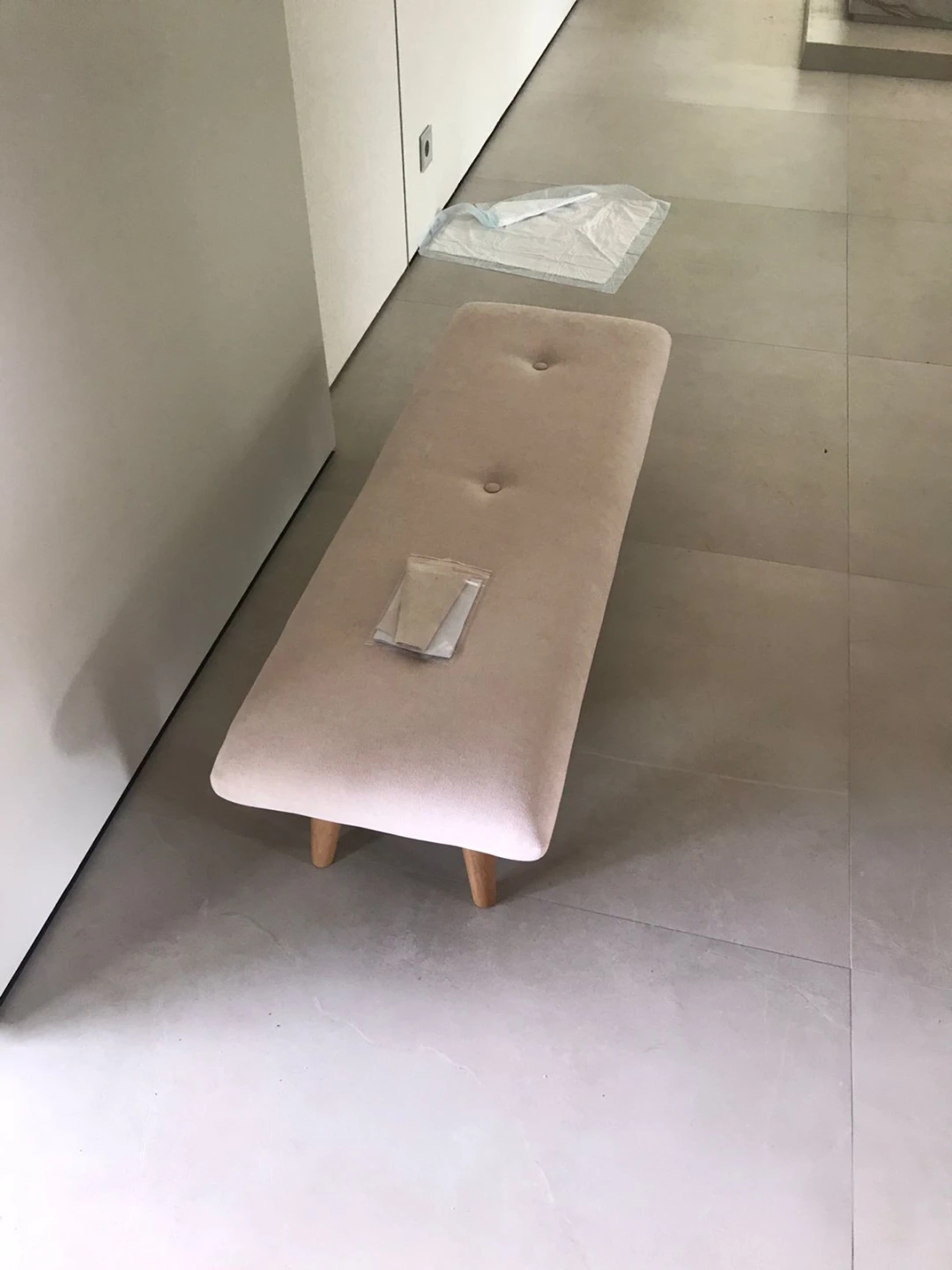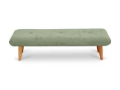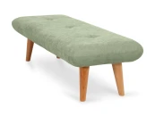 Невысокие (200 мм) ножки изготовлены из массива бука, дополнены фетровыми подпятниками, благодаря которым они не царапают напольное покрытие. Каркас выполнен из брусков дерева хвойных пород. А для максимального комфорта сидящего мы добавили в качестве наполнителя пенополиуретан марки ST (22/36) и синтепон – упругие, удобные, не теряющие формы даже при активном использовании мебели. Чехол из приятной на ощупь фактурной ткани несъёмный, декорирован пуговицами.