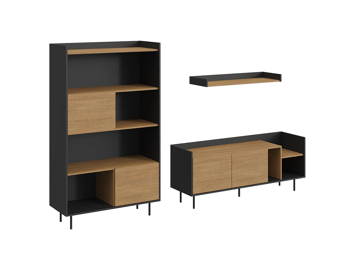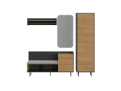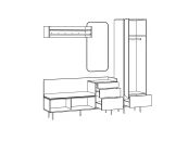 В нижней части шкафа выдвижной ящик на скрытых направляющих. Отделение за дверью укомплектовано как выдвижной штангой, которая крепится на верхнюю несъёмную полку, так и тремя съёмными полками.