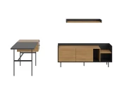 Особенность линейки заключается в контрасте элементов. Скругленные изящные металлические ножки поддерживают внушительное основание. При этом внешний вид моделей остается лёгким и элегантным. Также игру противоположностей усиливают древесная текстура на фасадах и черный цвет боковин с задней стенкой. Что придаёт большей динамики и выразительности дизайну. Эксклюзивность и завершенный вид воссоздает рамка, возвышающаяся над верхним горизонтом. Минималистичный вид конструкциям обеспечивает скрытая фурнитура. Двери и ящики открываются плавно, без шума и усилий. Комбинируйте комоды и серванты Look для создания целостного образа интерьера.