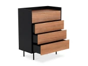 Особенность линейки заключается в контрасте элементов. Скругленные изящные металлические ножки поддерживают внушительное основание. При этом внешний вид моделей остается лёгким и элегантным. Также игру противоположностей усиливают древесная текстура на фасадах и черный цвет боковин с задней стенкой. Что придаёт большей динамики и выразительности дизайну. Эксклюзивность и завершенный вид воссоздает рамка, возвышающаяся над верхним горизонтом. Минималистичный вид конструкциям обеспечивает скрытая фурнитура. Двери и ящики открываются плавно, без шума и усилий. Комбинируйте комоды и серванты Look для создания целостного образа интерьера.