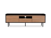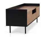 Особенность линейки заключается в контрасте элементов. Скругленные изящные металлические ножки поддерживают внушительное основание. При этом внешний вид моделей остается лёгким и элегантным. Также игру противоположностей усиливают древесная текстура на фасадах и черный цвет боковин с задней стенкой. Что придаёт большей динамики и выразительности дизайну. Эксклюзивность и завершенный вид воссоздает рамка, возвышающаяся над верхним горизонтом. Минималистичный вид конструкциям обеспечивает скрытая фурнитура.