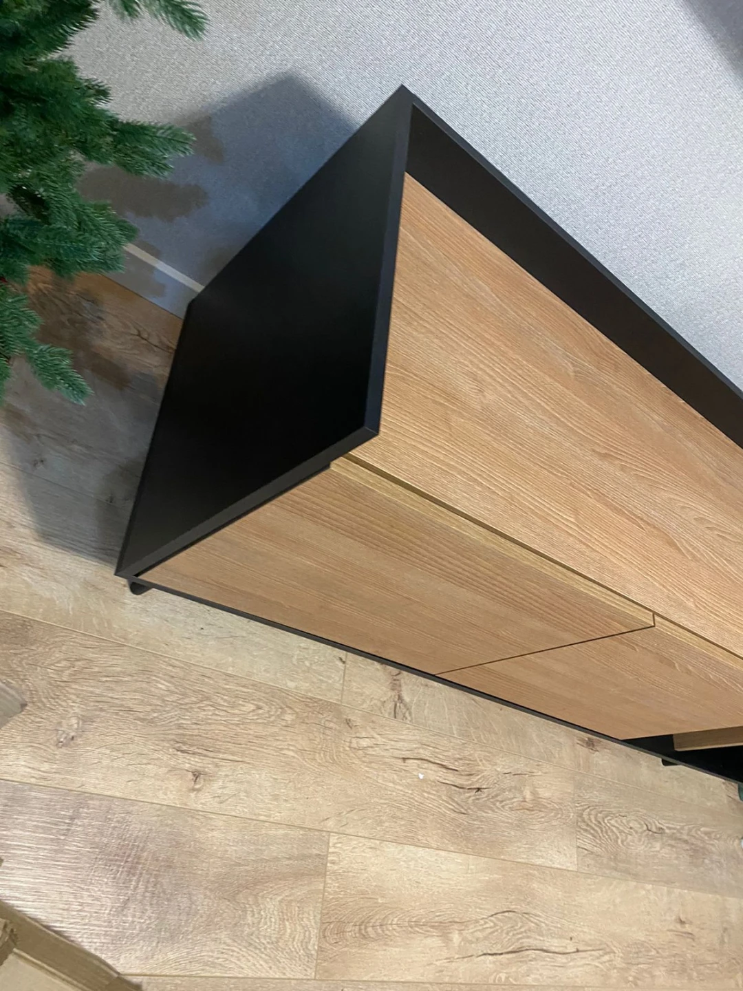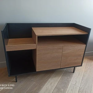 Особенность линейки заключается в контрасте элементов. Скругленные изящные металлические ножки поддерживают внушительное основание. При этом внешний вид моделей остается лёгким и элегантным. Также игру противоположностей усиливают древесная текстура на фасадах и черный цвет боковин с задней стенкой. Что придаёт большей динамики и выразительности дизайну. Эксклюзивность и завершенный вид воссоздает рамка, возвышающаяся над верхним горизонтом. Минималистичный вид конструкциям обеспечивает скрытая фурнитура. Двери и ящики открываются плавно, без шума и усилий. Комбинируйте комоды и серванты Look для создания целостного образа интерьера.