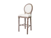 Барный стул Filon ver.3 на высоких ножках, с прочным каркасом из дубового массива и практичным верхом из эко-кожи белого цвета. Обивка устойчива к износу и загрязнениям, при необходимости легко очищается влажной салфеткой. Круглая спинка в деревянном обрамлении придает модели необычный вид и оригинально сочетается с мягким прямоугольным сиденьем.