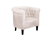 Кресло Swaun Beige Velvet с заниженной спинкой, на основе натурального березового массива. Обивка изготовлена из мягкого бежевого вельвета, который красиво смотрится и приятен на ощупь. С белым верхом эффектно контрастируют короткие ножки, окрашенные в черный цвет. Дополнительным декором служит объемная стяжка, образованная вшитыми в спинку мебельными пуговицами. Модель органично вписывается в интерьер спален и гостиных, делает обстановку более уютной и непринужденной.