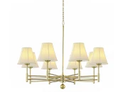 Люстра Aldente на основе прочного каркаса из системы металлических трубок. Кронштейн сверху крепится к потолочной планке, а снизу удерживает небольшой металлический диск, от которого расходятся лучами восемь держателей для ламп, с образованием правильной симметричной фигуры.