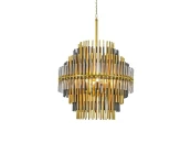 Люстра Emile Round шарообразной формы, на основе металла и стекла. Состоит из множества мелких трубок серебристого, золотого и черного цвета, которые соединяются друг с другом и образуют яруса с плавным переходами между ними.