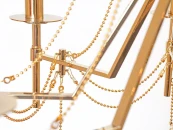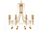 Люстра Rocco Gold 8 сложной конструкции из стилизованного под золото металла. Состоит из множества изящных элементов разных форм. От верхнего основания модели отходят тонкие стержни с квадратным сечением, которые, дважды изогнувшись под углом 135 градусов, переходят в держатели для ламп.