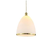Люстра Hemisphere изготовлена в лаконичном дизайне из матового стекла и металла, стилизованного под золото. Плафон выполнен в виде вытянутой полусферы, внутри которой располагается цоколь, рассчитанный на подключение лампочки мощностью 40 Вт.
