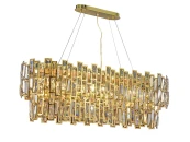 Люстра Princess 1200 продолговатой формы со множеством изящных стеклянных пластин с зеркальной поверхностью. Пластины выполнены в прямоугольной форме и заключены в золотое обрамление, способны эффектно рассеивать свет со множеством разноцветных бликов, создающих праздничное настроение.
