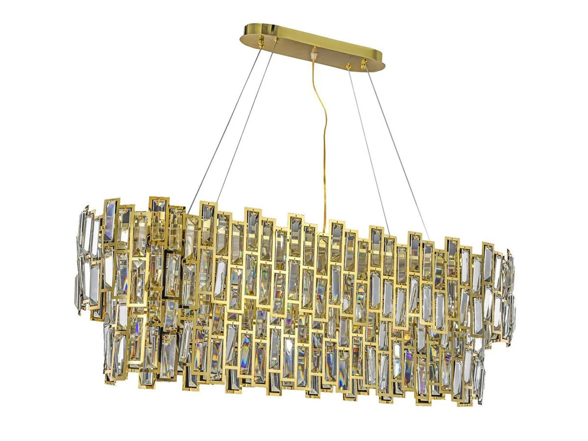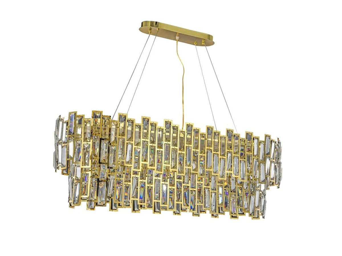 Люстра Princess 800 продолговатой формы со множеством изящных стеклянных пластин с зеркальной поверхностью. Пластины выполнены в прямоугольной форме и заключены в золотое обрамление, способны эффектно рассеивать свет со множеством разноцветных бликов, создающих праздничное настроение.