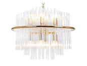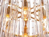 Люстра Bekiles 18 выполнена в современном стиле, с использованием строгих геометрических линий – окружностей и прямых. Состоит из системы прозрачных стеклянных трубок, расположенных в два ряда, с образованием цилиндрических поверхностей. Все элементы крепятся к прочному металлическому каркасу, подвешенному на цепочке. Внешний цилиндр охватывает широкое кольцо из металла, стилизованного под золото.