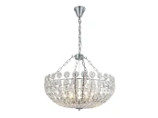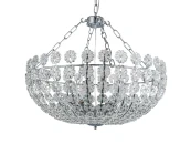Шикарная люстра Cleo серебристого цвета, в виде чаши с ажурными стенками. Легкий полувоздушный каркас из хромированной проволоки покрыт сетью изящных цветков, отлитых из прозрачного стекла. Внутри чаши скрыты цоколи Е14 с лампочками, свет которых, проходя сквозь стеклянную преграду, частично преломляется и приглушается, с созданием необычных визуальных эффектов.
