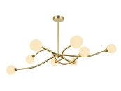 Люстра Freya в виде фантастического цветка, с золотистыми стеблями и белыми бутонами. Каркас выполнен из стилизованного под золото металла – от короткого стержня отходят изогнутые держатели с цоколями G9 на концах. Плафоны слегка вытянутой формы изготовлены из гладкого матового стекла. Они украшают модель и одновременно рассеивают и смягчают световой поток, устраняя его слепящий эффект.