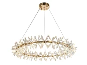 Роскошная люстра Star Light на основе золотистого металла и прозрачного стекла, по внешнему виду напоминает сверкающий венок, составленный из неземных растений. На круглый каркас, образованный переплетением тонких металлических прутьев, крепятся изящные стеклянные элементы, направленные в разные стороны и образующие собой плотный махровый слой. Проходящий сквозь него свет частично рассеивается и преломляется, с созданием красивых визуальных эффектов.