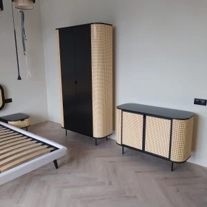 Коллекция предметов мебели для спальни с использованием декор-ротанга. Оригинальный дизайн сосредоточен на контрастных сочетаниях. Гармония природы — главный лейтмотив линейки. Который выражен в лаконичной геометрии, использовании натуральных материалов: деревянного бруса, массива бука, естественных оттенках. Каждая деталь кроватей, шкафов, тумб, сервантов, зеркал поддерживает настроение спокойствия и умиротворения. «Ажурные» элементы плетения из искусственного ротанга добавляют теплоты, объёма и эксклюзивности. Рельефные текстуры отвечают за живость, динамику, разнообразие. Благодаря «текучему» характеру, данные модели органично впишутся в пространства с намёком на эко, минимализм, бохо, этнику, эклектику и привнесут концепцию осязаемого комфорта с визуальной непринужденностью.