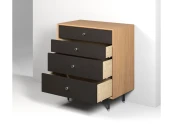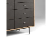 Коллекция мебели в стиле minimaluxe. Чистота линий и пропорций, свойственная минимализму, гармонично дополнена фактурами. Элегантное сочетание дерева и натуральной кожи является уникальной особенностью коллекции. Декоративная фурнитура выполнена из нержавеющей стали с кожанным декором по авторским эскизам.Материалы: корпус - МДФ, шпон ореха / дуба на выбор, полуглянцевый прозрачный лак; фасады - МДФ, кожа коричневого / черного цвета на выбор, полуглянцевый прозрачный лак; ящики - МДФ, шпон ясеня, прозрачное минеральное масло; декоративная фурнитура - нержавеющая сталь. Фурнитура - направляющие скрытого типа с доводчиками. Варианты отделок представлены на последнем фото.Конфигурация: 4 ящика.Изделие поставляется в собранном виде.