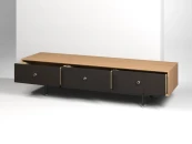 Коллекция мебели в стиле minimaluxe. Чистота линий и пропорций, свойственная минимализму, гармонично дополнена фактурами. Элегантное сочетание дерева и кожи является уникальной особенностью коллекции. Декоративная фурнитура выполнена из нержавеющей стали с кожанным декором по авторским эскизам.Материалы: корпус - МДФ, шпон ореха / дуба на выбор, полуглянцевый прозрачный лак; фасады - МДФ, кожа коричневого / черного цвета на выбор, полуглянцевый прозрачный лак; ящики - МДФ, шпон ясеня, прозрачное минеральное масло; декоративная фурнитура - нержавеющая сталь. Фурнитура - направляющие скрытого типа с доводчиками. Варианты отделок представлены на последнем фото.Конфигурация: 3 ящика.Изделие поставляется в собранном виде.