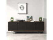 Коллекция мебели в стиле minimaluxe. Чистота линий и пропорций, свойственная минимализму, гармонично дополнена фактурами. Элегантное сочетание дерева и натуральной кожи является уникальной особенностью коллекции. Декоративная фурнитура выполнена из нержавеющей стали с кожанным декором по авторским эскизам.Материалы: корпус - МДФ, шпон ореха / дуба на выбор, полуглянцевый прозрачный лак; фасады - МДФ, кожа коричневого / черного цвета на выбор, полуглянцевый прозрачный лак; декоративная фурнитура - нержавеющая сталь. Фурнитура - петли с доводчиками. Варианты отделок представлены на последнем фото.Конфигурация: 4 двери /4 полкиИзделие поставляется в собранном виде.