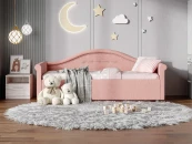 Кровать для девочки с изысканным изгибом спинки и округлыми формами подарят вашему ребенку волшебные мгновения сна. Разнообразие вариантов обивки сделает кровать неповторимой. Модель изготовлена из ДСП.